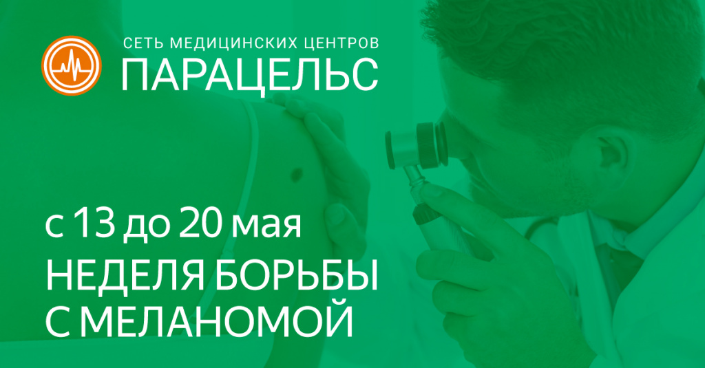 c 13 по 20 мая 2019г. в Медицинском центре "Парацельс" проходит неделя борьбы с меланомой. Скидки до 35% на комплекс услуг ранней диагностики меланомы.
